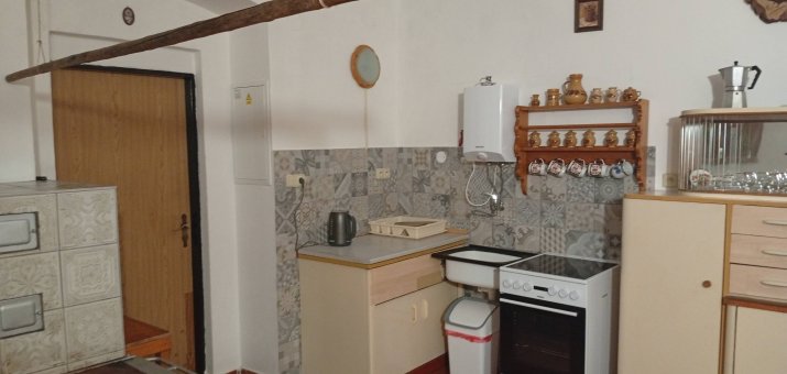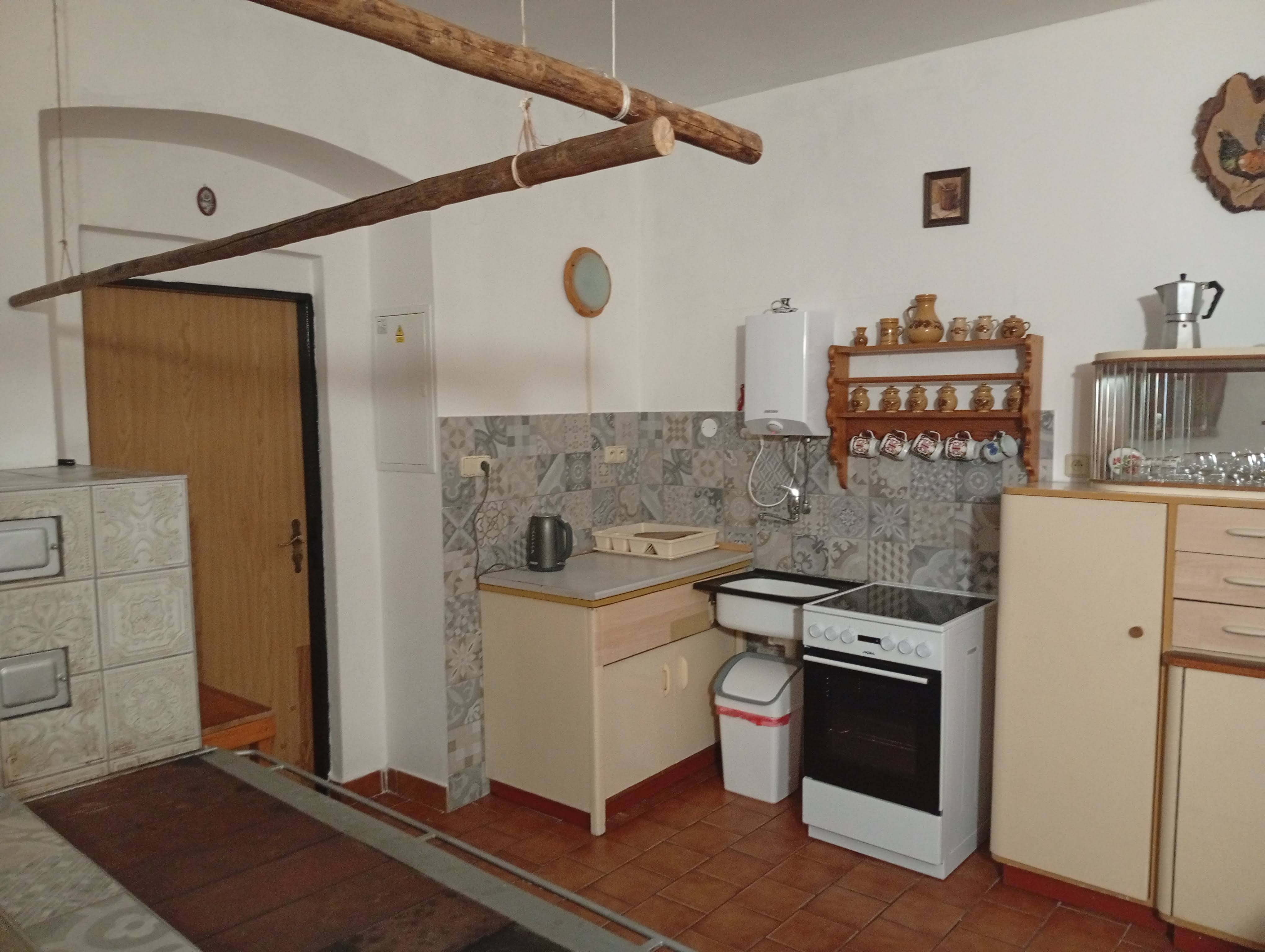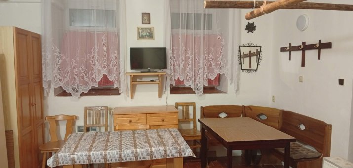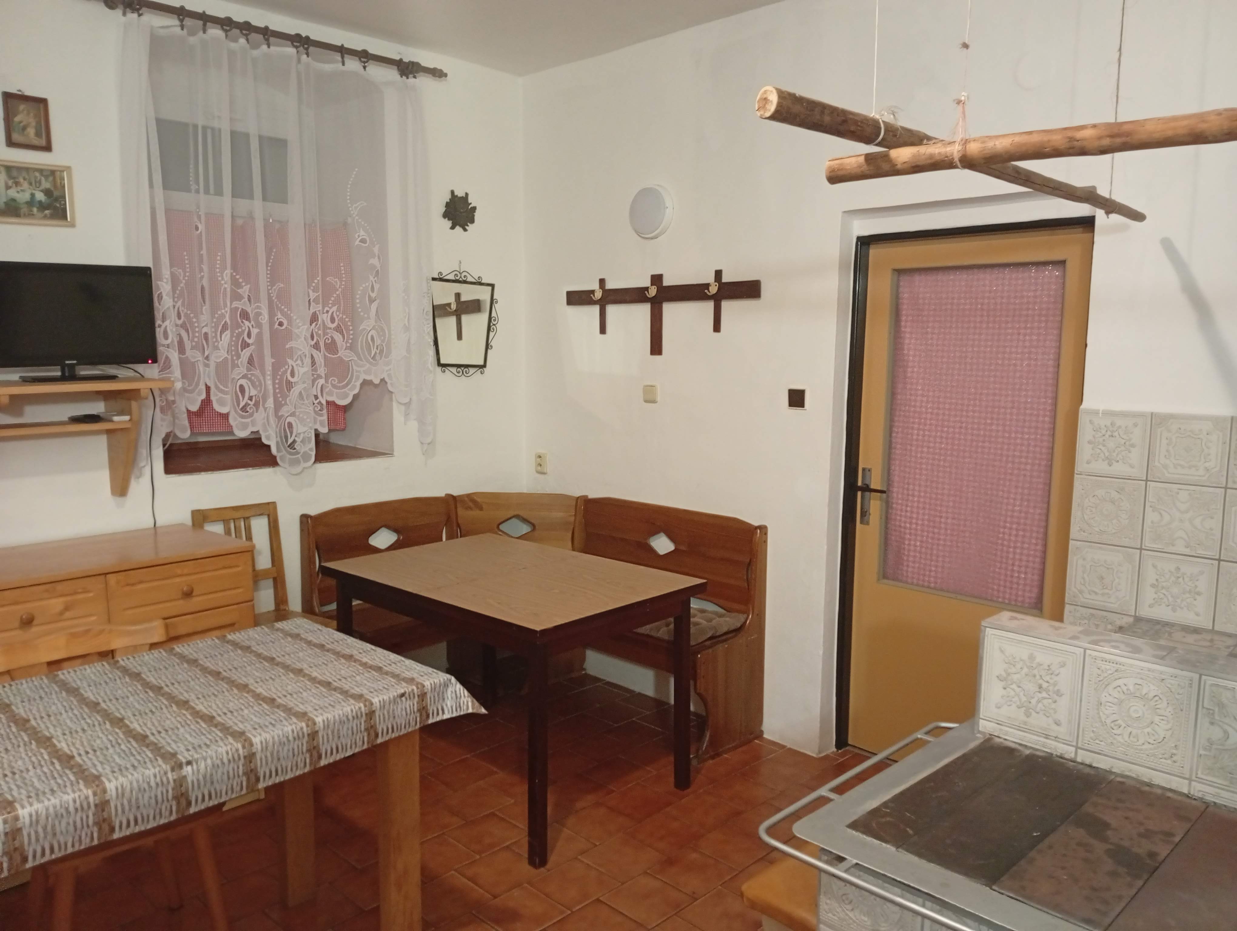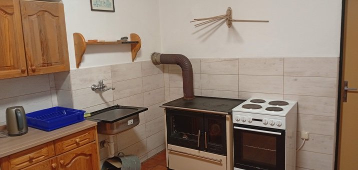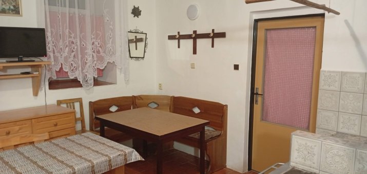 - Aartmán č. 1: V přízemí, 1 x kuchyň, 2 x pokoj, elektrický sporák, sporák na dřevo, koupelna, WC, TV