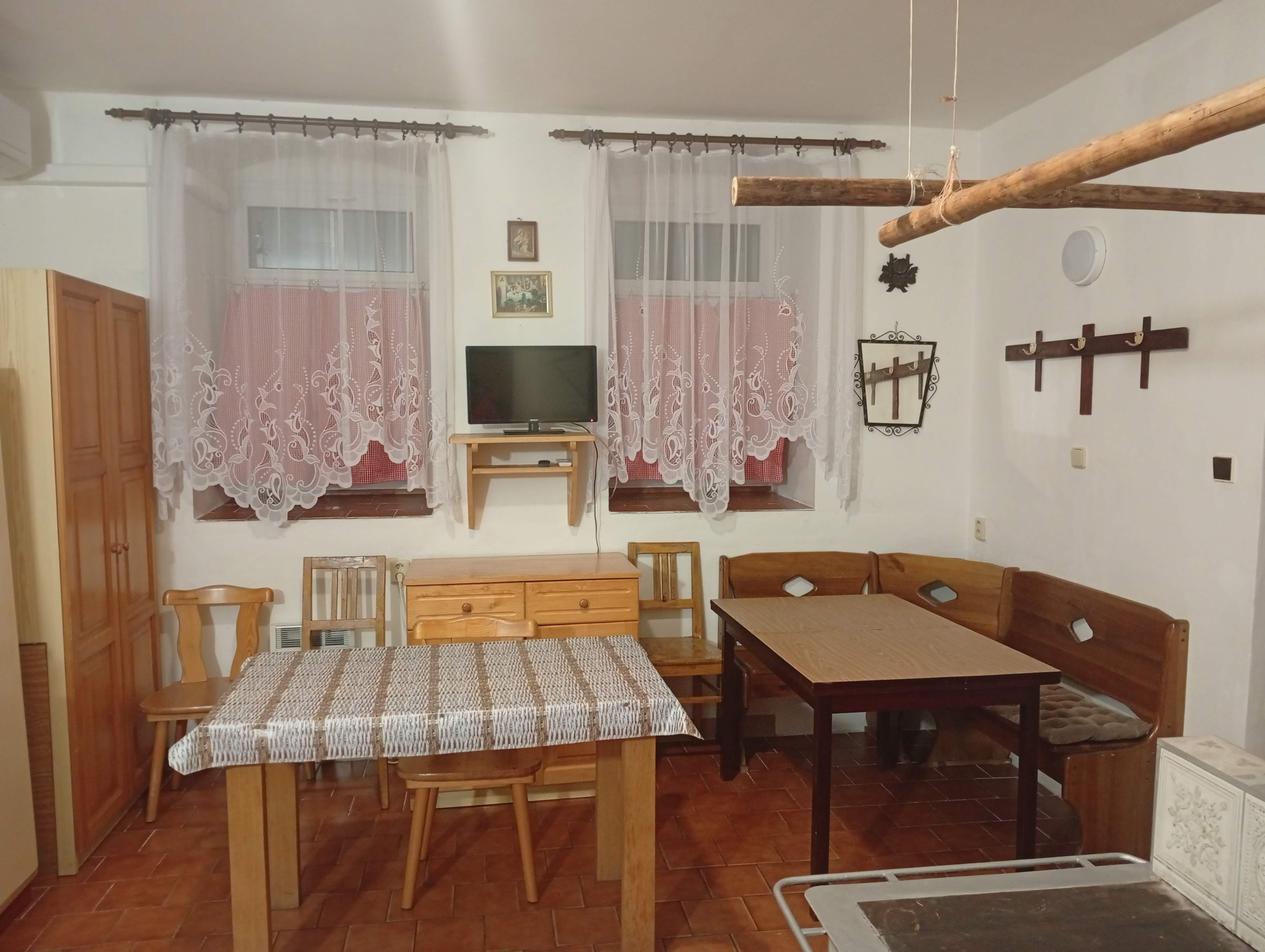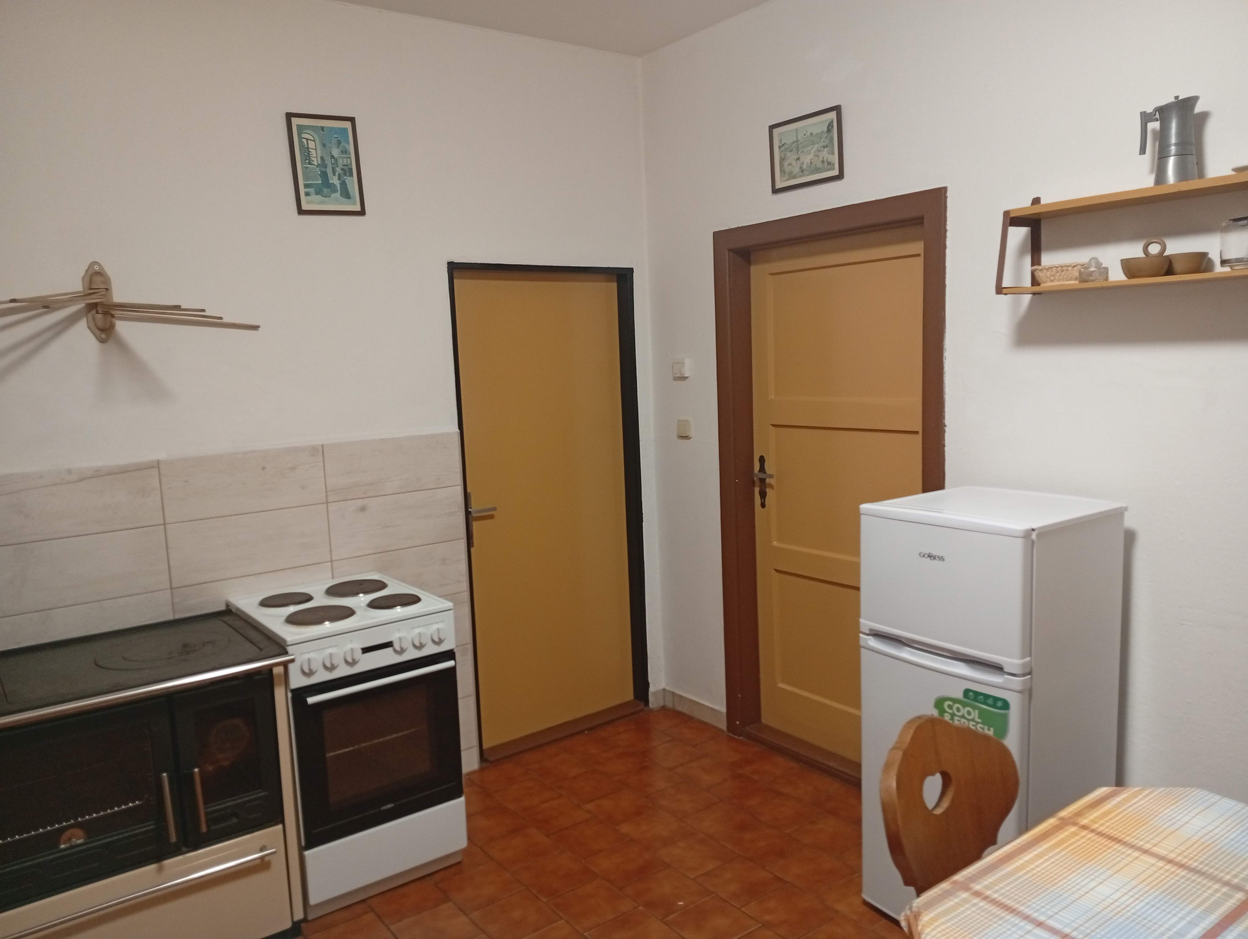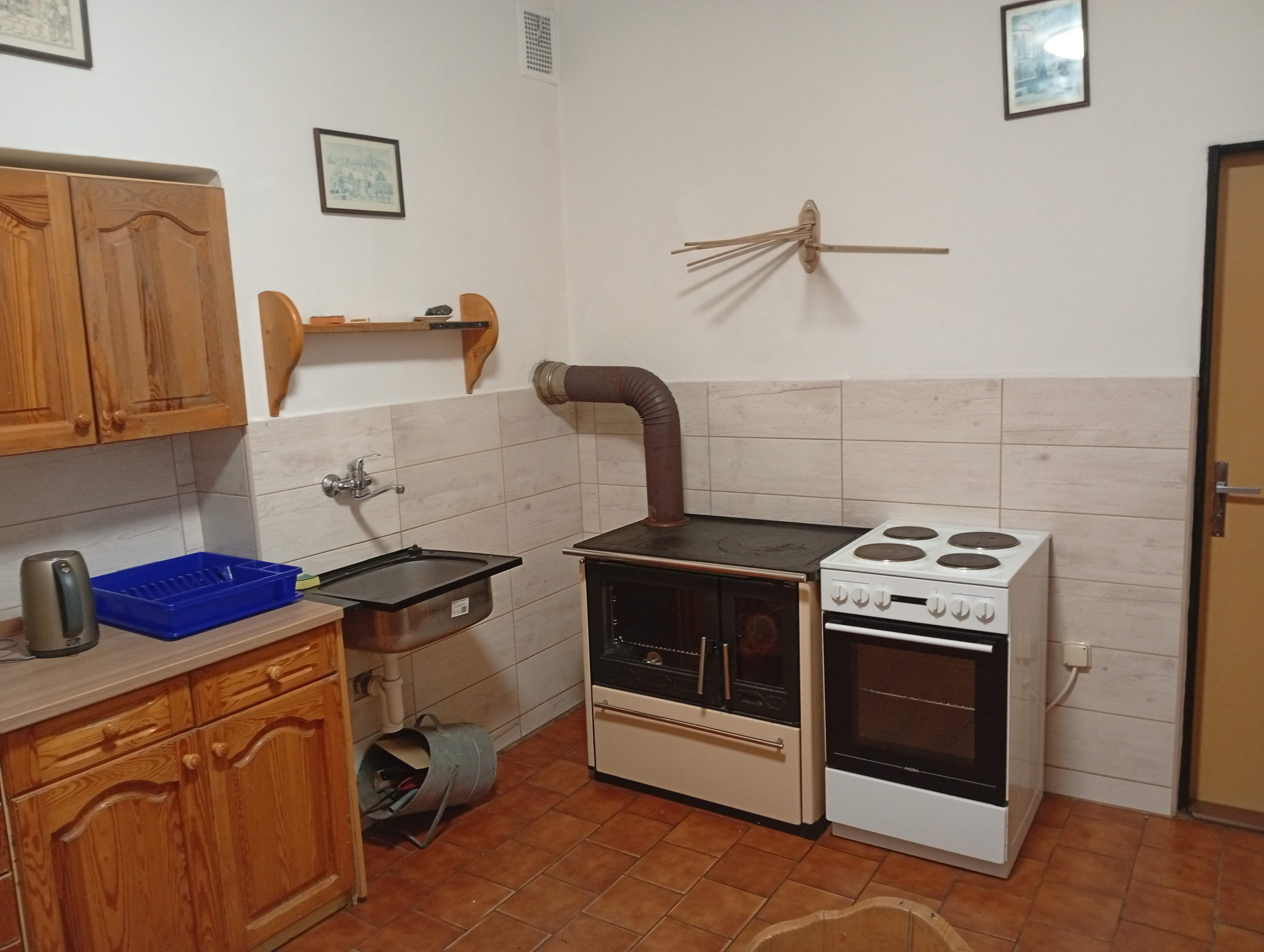 - Aartmán č. 1: V přízemí, 1 x kuchyň, 2 x pokoj, elektrický sporák, sporák na dřevo, koupelna, WC, TV