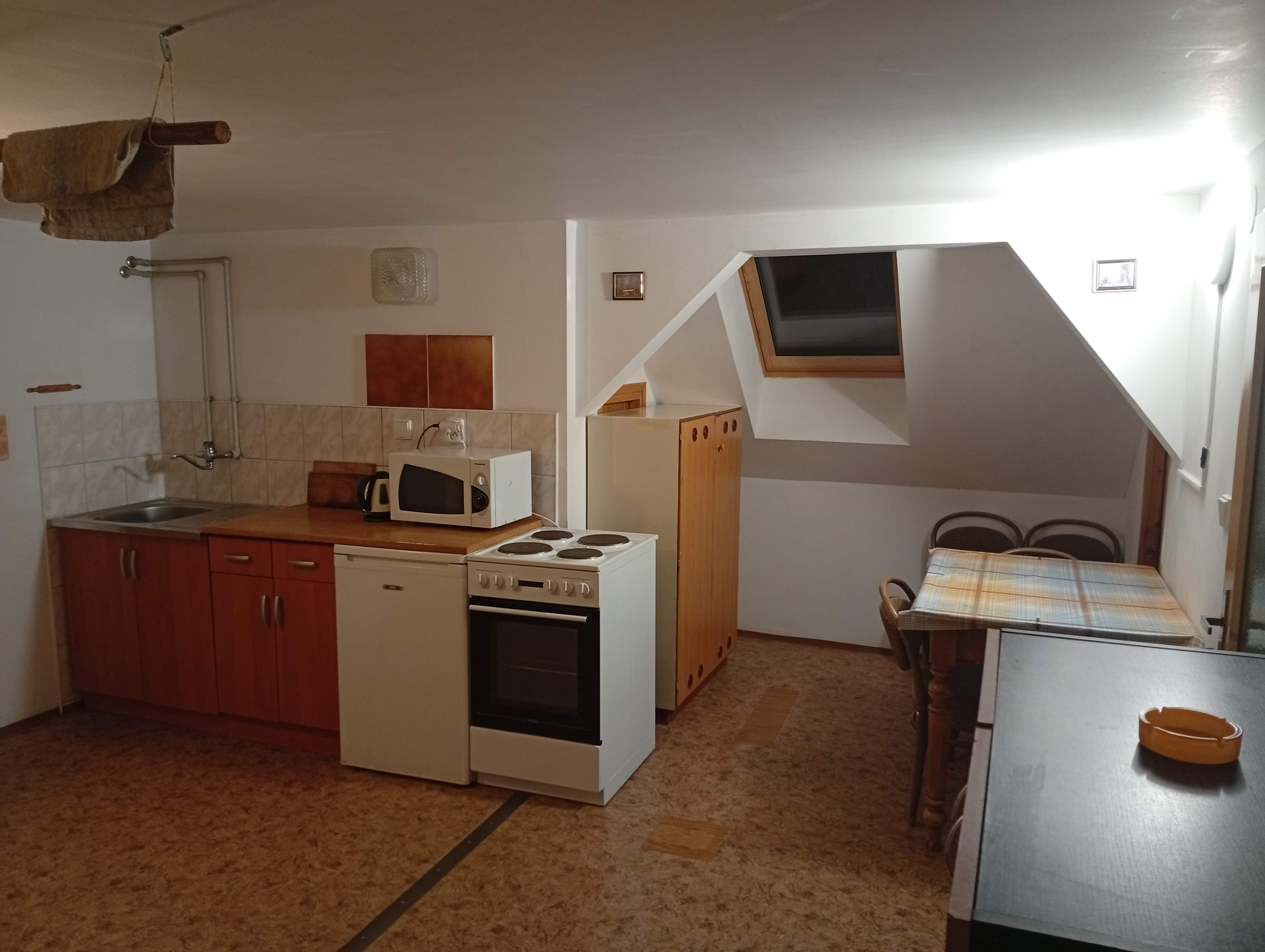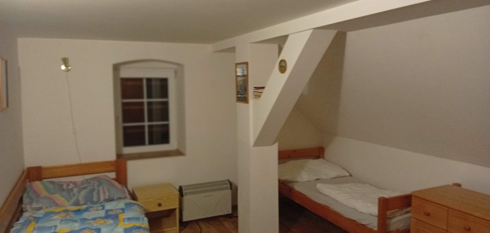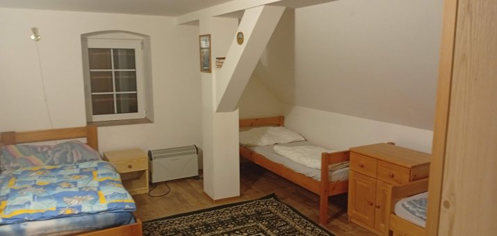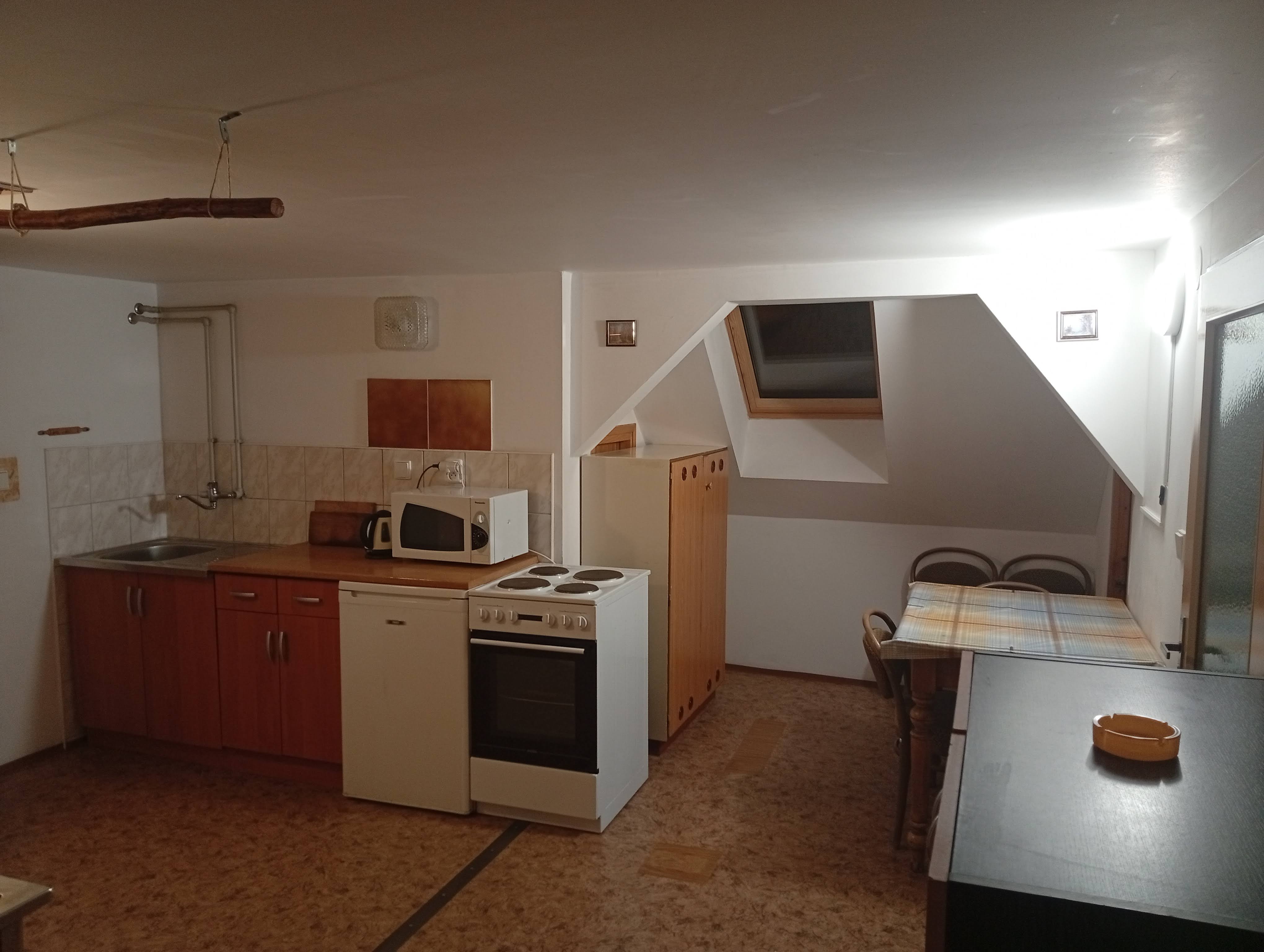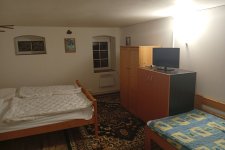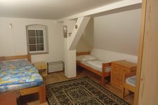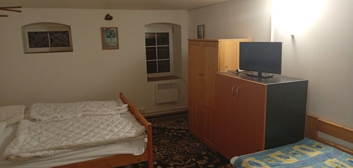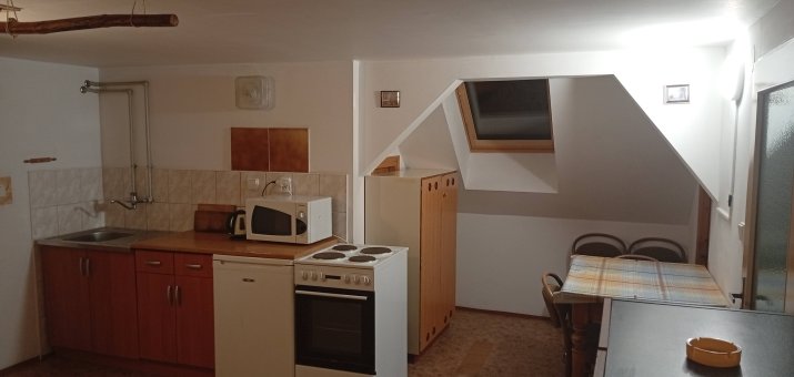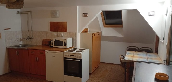 - Aartmán č. 3: V podkroví, 1 x kuchyň, 3 x pokoj, elektrický sporák, kamna na dřevo, koupelna, WC, mikrovlnka, TV