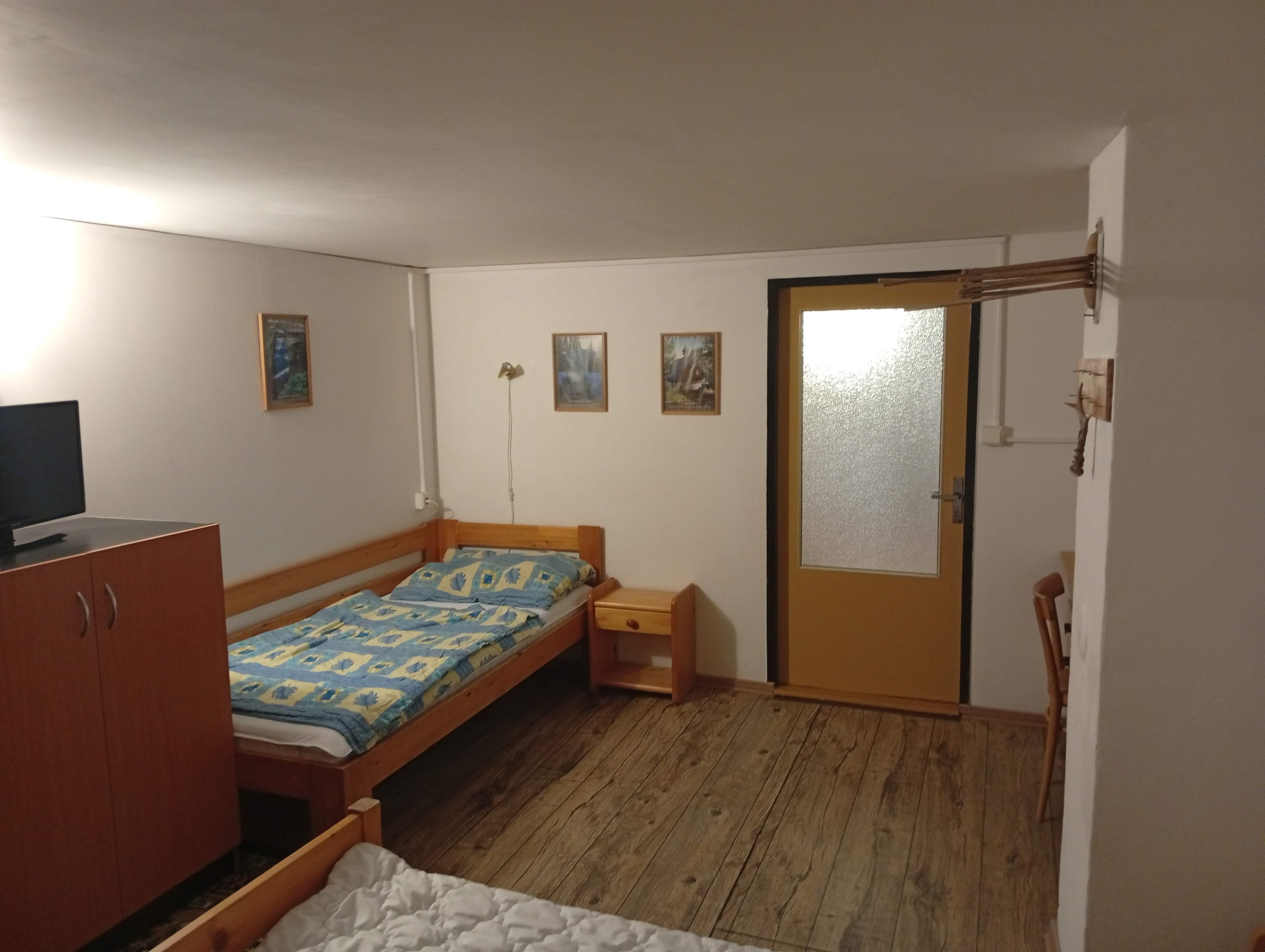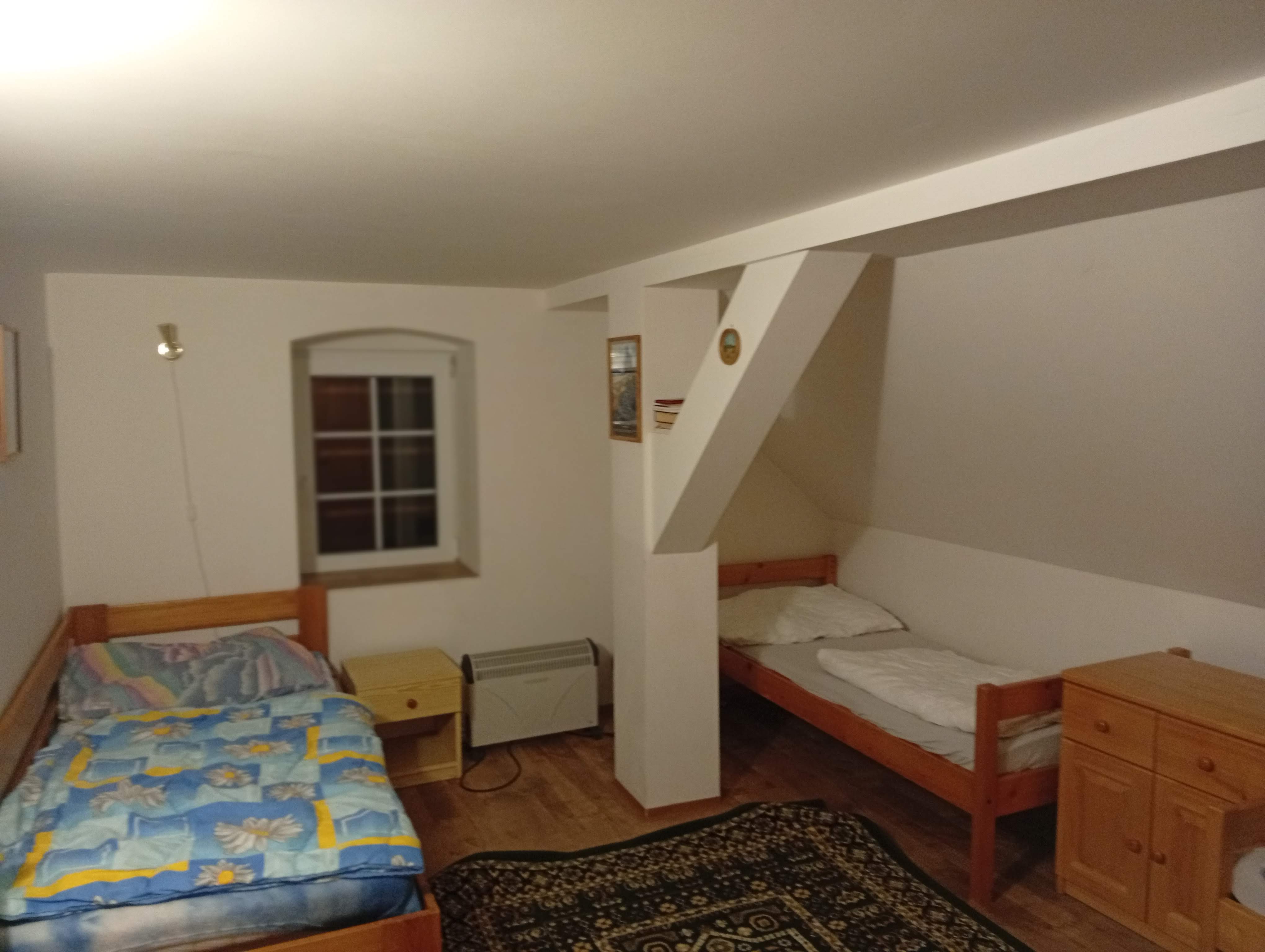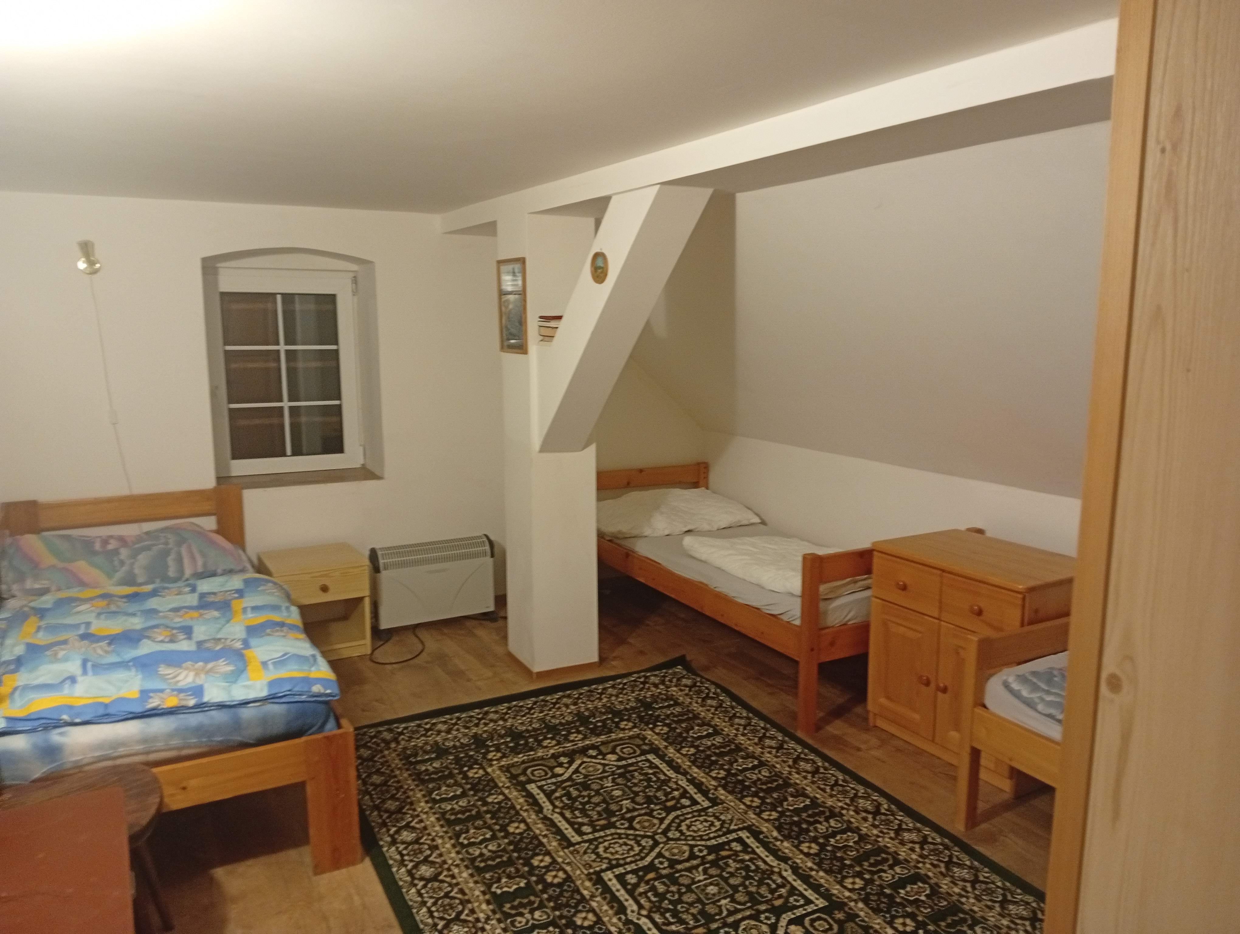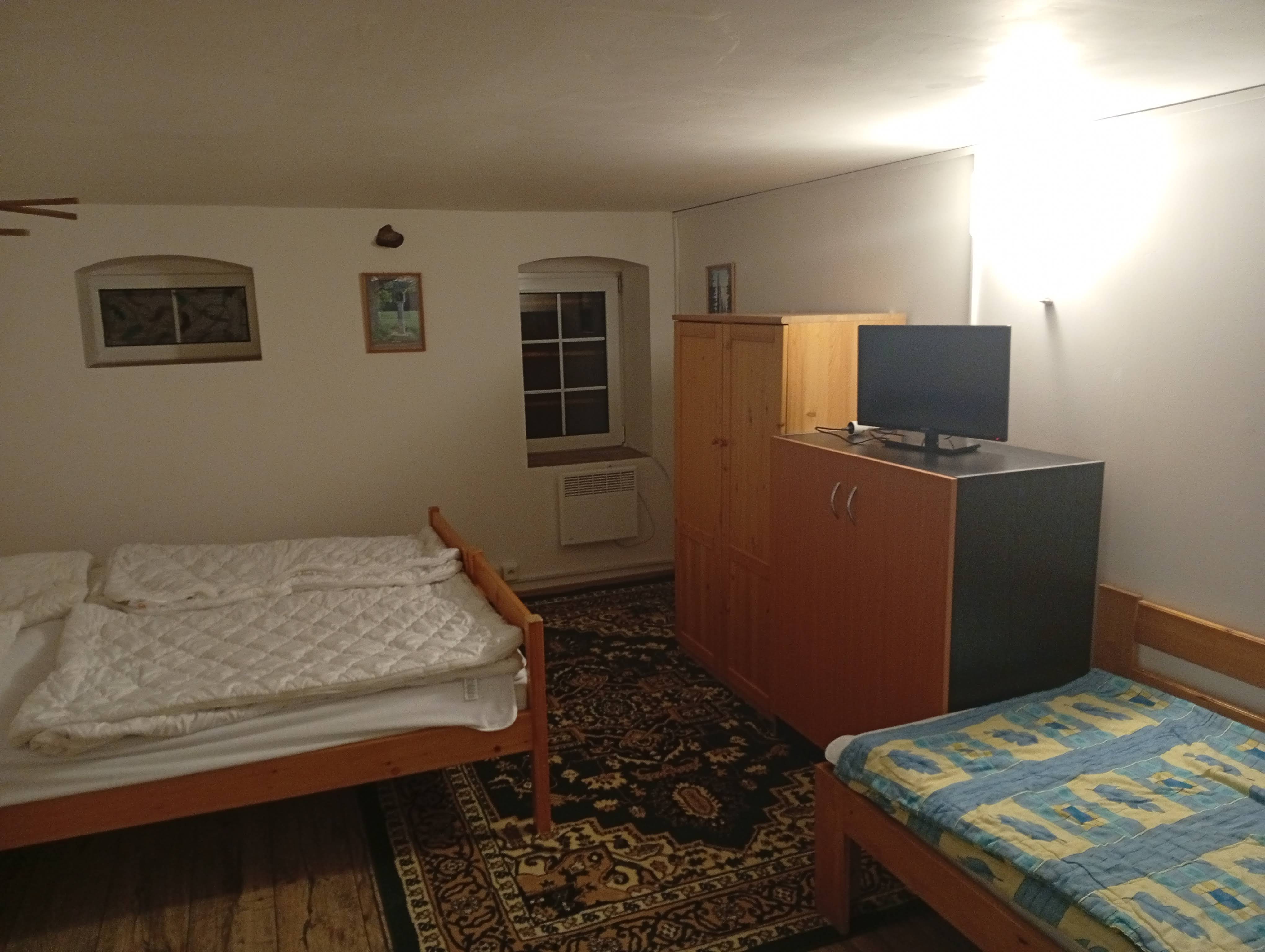 - Aartmán č. 3: V podkroví, 1 x kuchyň, 3 x pokoj, elektrický sporák, kamna na dřevo, koupelna, WC, mikrovlnka, TV