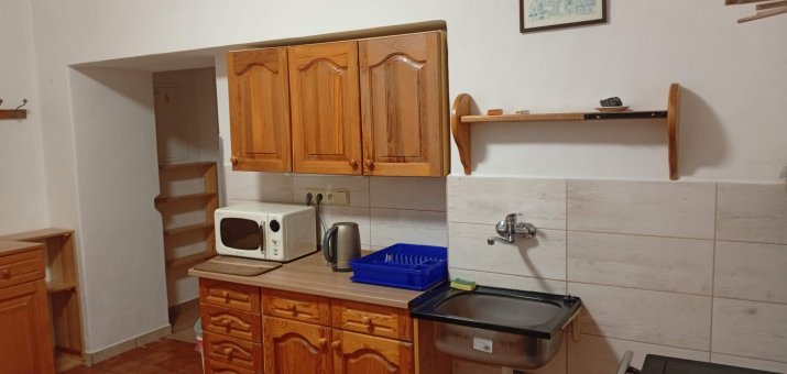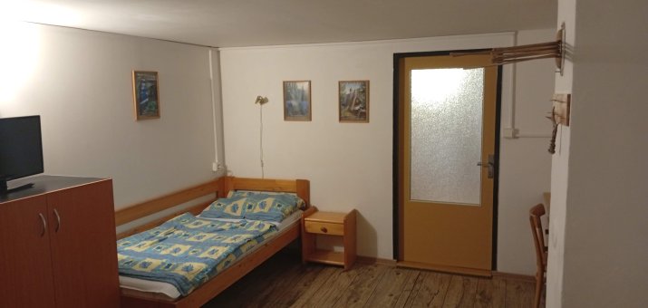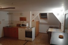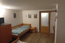 - Aartmán č. 2: V přízemí, 1 x obytná kuchyň, 1 x pokoj, plynový vařič, pec, sprcha, WC, mikrovlnka. TV